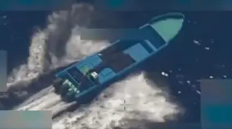 El video de uno de los ataques parece mostrar una larga lancha rápida de color azul moviéndose por el agua antes de recibir el impacto de munición estadounidense.